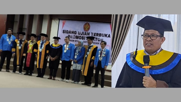 Promovendus Andi Asnudin mahasiswa angkatan 2021, menyelesaikan program Doktoral berkat arahan bimbingan Rektor Universitas Tadulako Prof. Dr.Ir.Amar, ST,MT sebagai Promotor dan Ko-Promotor Dr.Ir. Tutang Muhtar Kamaludin.